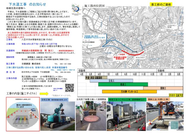 新設の下水道管を布設する為の、工事を実施することになりましたので