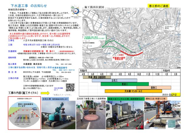 新設の下水道管を布設する為の、工事を実施することになりましたので